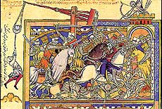 1997 Fertigstellung des Nachbaus der Steinschleuder und erfolgreicher "Jungfernschuß" am 1. Juni